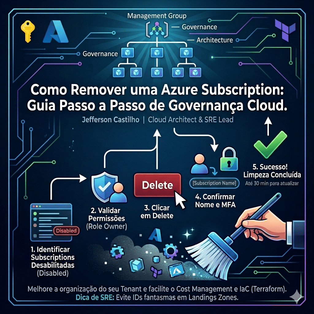 Para quem utiliza Infrastructure as Code (IaC), remover assinaturas obsoletas é vital. Manter IDs inexistentes no seu código de Landing Zones pode causar erros de “Plan” ou “Apply” no Terraform, especialmente se você utiliza módulos que iteram sobre todas as assinaturas do Management Group.